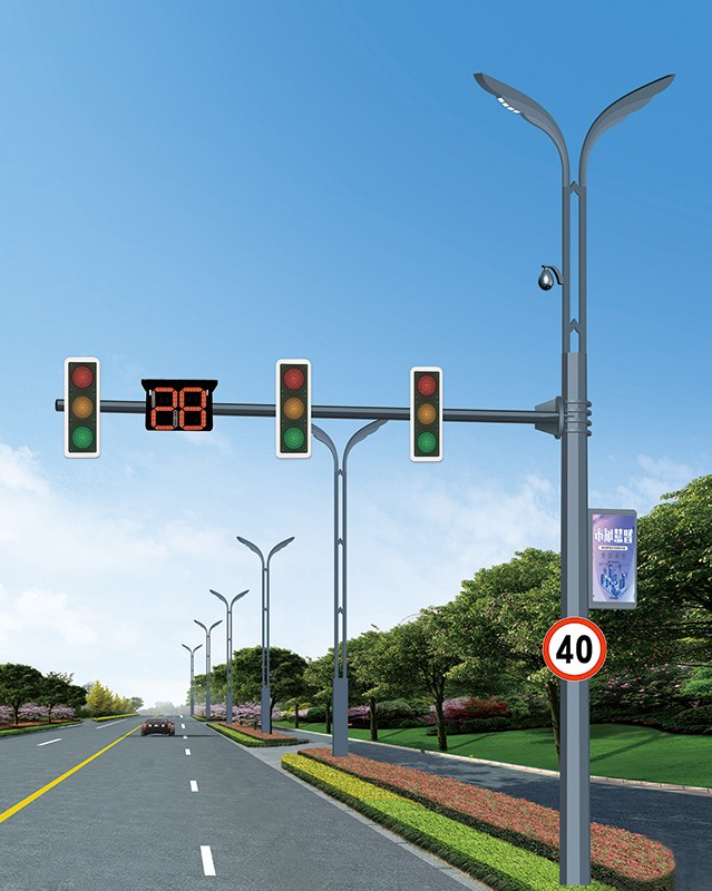 桿件規(guī)格: 1.立桿高度:立柱8-10米,橫臂3-15米。厚度6-12mm 2.桿件材質(zhì):優(yōu)質(zhì)Q235鋼材,表面熱鍍鋅,可選擇噴塑處理 3.配套標(biāo)志牌、信號燈、監(jiān)控設(shè)備、道路照明 4.造型:F型2F型、3F型、T型 5.質(zhì)保:10年